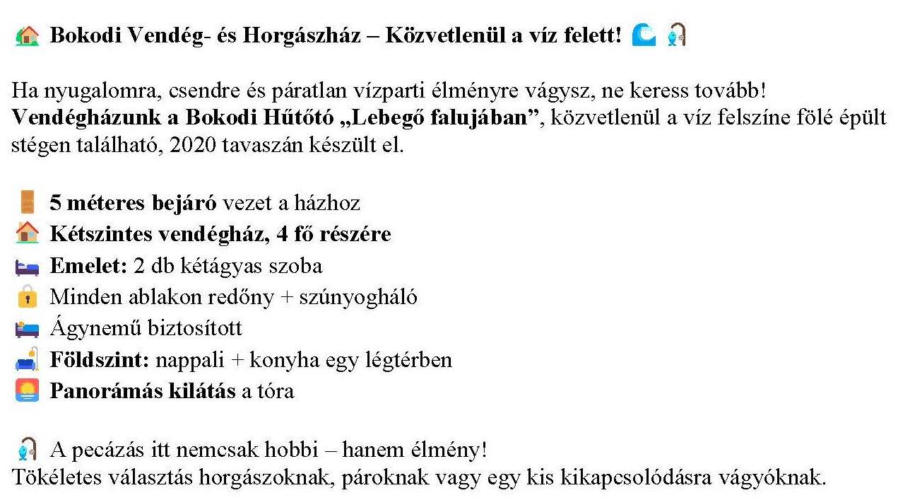 "BOKODI ÜDÜLŐ és HORGÁSZHÁZAK"
