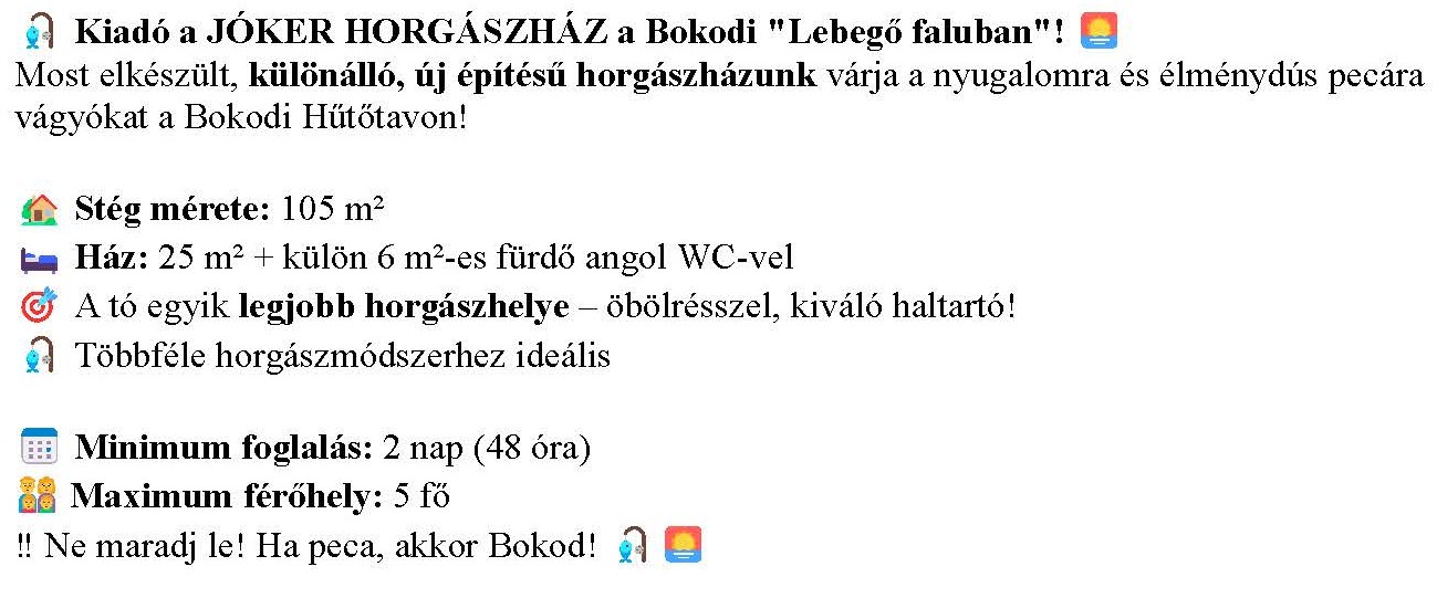 "LUXOR ÉS JOKER HORGÁSZHÁZAK BOKOD"