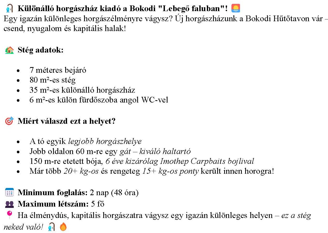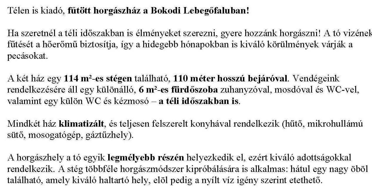 "BOKODI LEBEGŐFALU HORGÁSZHÁZ"