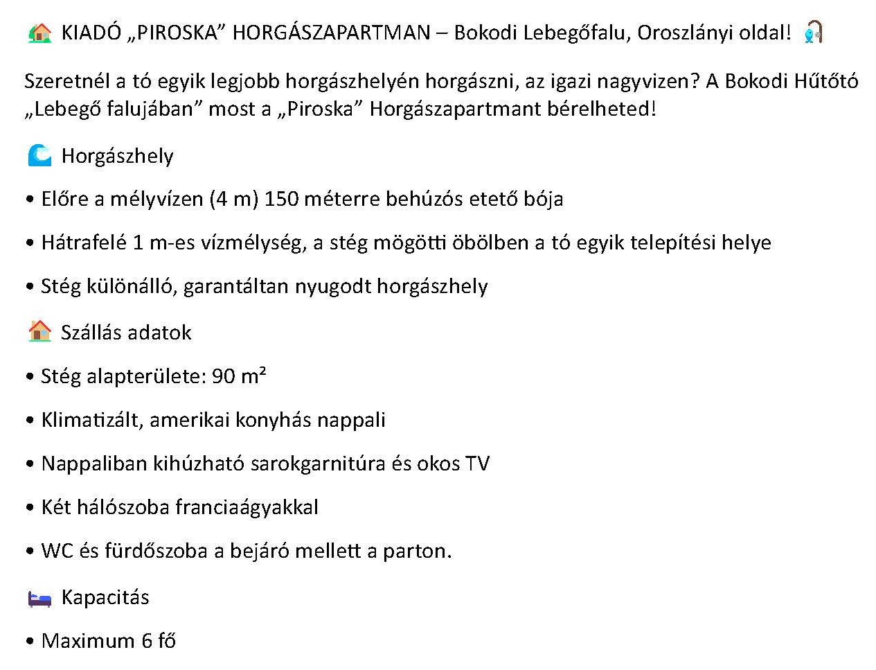"PIROSKA HORGÁSZAPARTMAN"