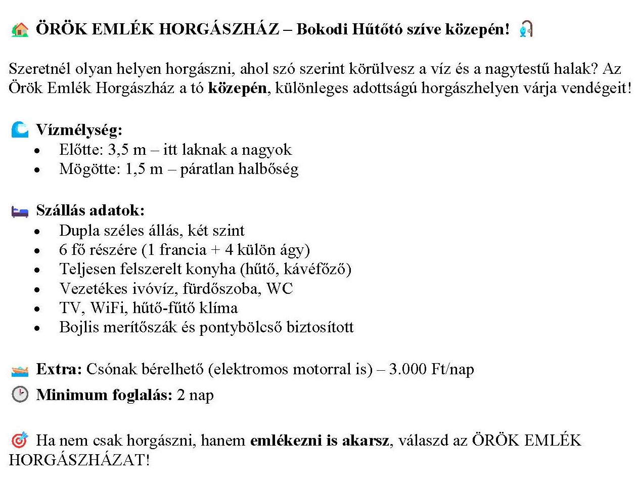 "ÖRÖK EMLÉK HORGÁSZHÁZ"