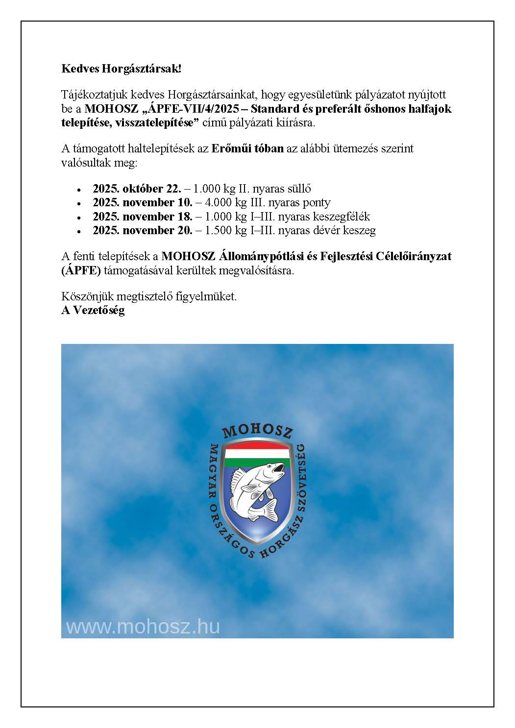 Kérjük, tájékoztassák horgásztársaikat a változásról, köszönjük!